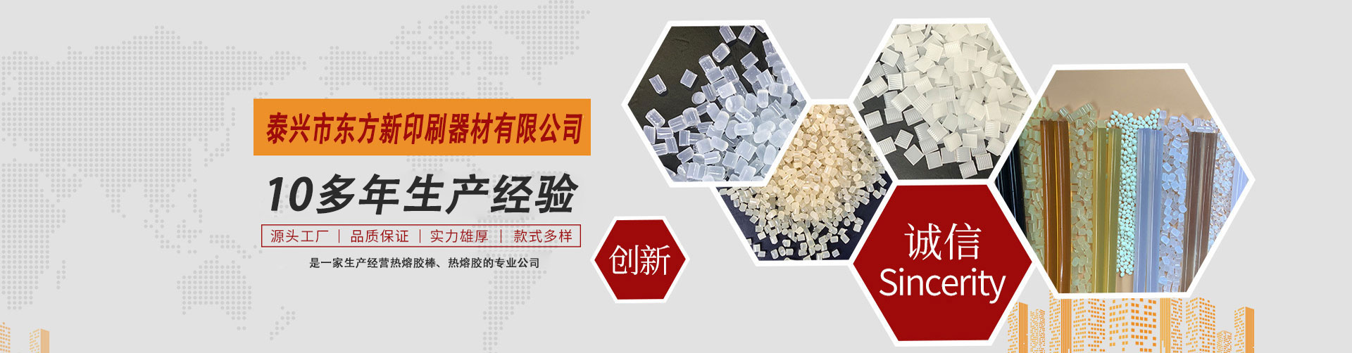 泰興市東方新印刷器材有限公司是專一生產綠色環(huán)保型印刷裝訂書刊熱熔膠,封箱包裝熱熔膠,吸管膠,鞋材熱熔膠,冰箱熱熔膠,熱熔膠棒,地毯背膠等。產品具有快速粘接、耐老化、強度高、熱穩(wěn)定性好、無毒害等優(yōu)點,廣泛用于無線膠訂、自動化封箱,飲料吸管粘結接,電子電器、工藝品、玩具、家具等領域,公司與多家科研機構建立了緊密的戰(zhàn)略合作關系,質量達到先進水平,產品已銷往全國30多個省市地區(qū),并出品到東南亞多個國家和地區(qū)。    公司堅持“誠信為本,貼心服務”為廣大顧客提供優(yōu)質產品,董事長兼總經理黃衛(wèi)東先生攜全體員工,竭誠歡迎各界朋友光臨指導、洽談合作、共贏同發(fā)展。    Taixing Dongfang New Printing Equipment Co., Ltd. specializes in the production of green and environmentall…